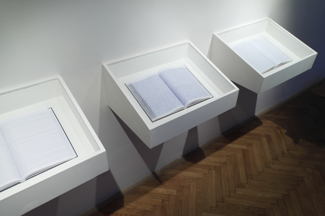 Pojem „prázdno“ je fascinující už jen tím, za kolika různých a často neslučitelných okolností ho užíváme. Jan Nálevka někdy vyprazdňuje významový prostor, jako například když nakreslí prázdné řádky přes listy knihy o moderním umění a symbolicky jeho výklad připraví k budoucímu přepsání. Jindy „k ničemu“ nepřidá vlastní prací nic navíc, jako když na čisté listy papíru nakreslí čtvercové sítě, které chápeme pouze jako další z možných podob plochy bez záznamu.